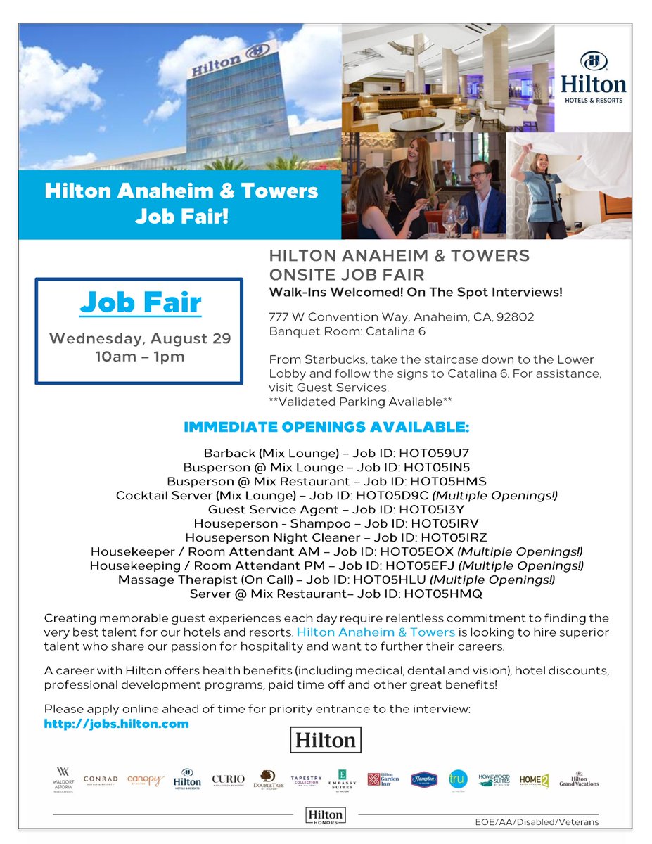 Hilton Recruiter On Twitter See You Tomorrow At The Hilton Anaheim Amp Towers Job Fair From 10am 1pm Hiring For Hotel Jobs Now Jobseekers Hotel Hilton Hiringnow Https T Co Tsl8azezc8 Twitter